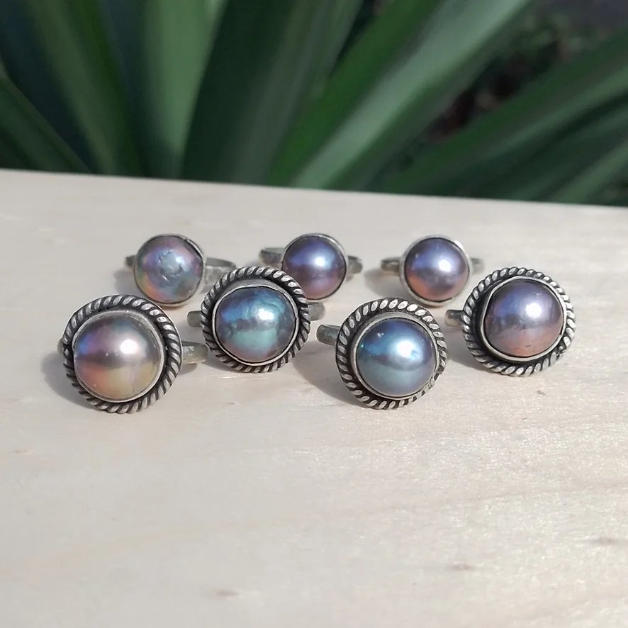 Anillo de Perla Tornasol de Mar y Alpaca