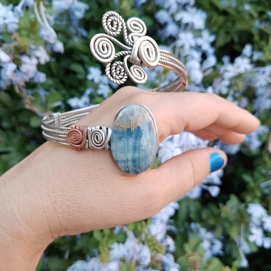 Brazalete de Alpaca + Onix Cielo
