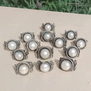 Anillo de Perla Blanca de Mar y Alpaca Regulables